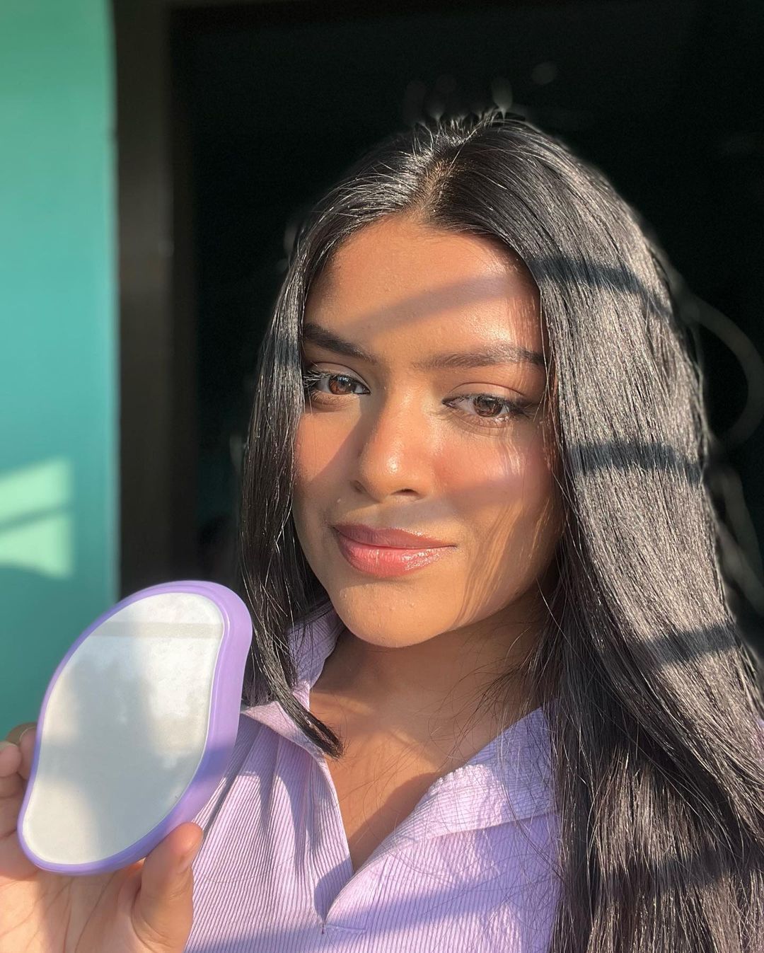 Our crystal hair remover is made with the latest nano-glass technology. So when you rub it on your skin in a circular motion it helps to remove the hair and make your skin crystal clear.